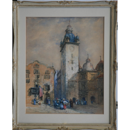 Firma indecifrata "Scorcio di città" 1863, tecnica mista su carta (cm 41x33) Firmato e datato in basso a sinistra. In cornice
