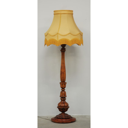 Lampada da terra con fusto in legno tornito e scanalato, paralume in stoffa (h cm 178)