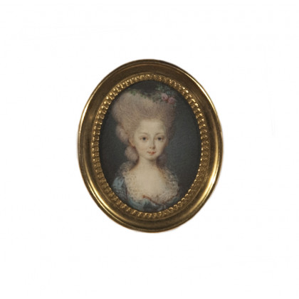 Miniatura ovale raffigurante gentildonna (cm 3,2x2,5). In cornice di rame dorato. Francia, fine sec. XVIII