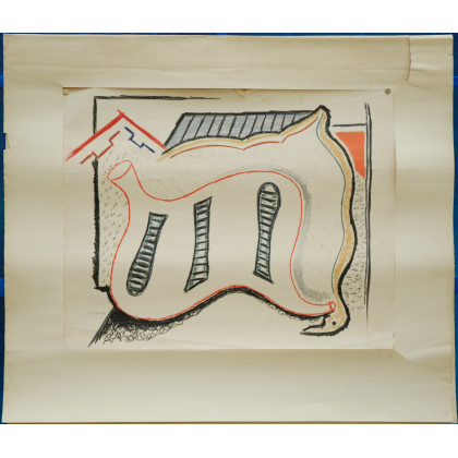 "Composizione" disegno a pastelli colorati su cartoncino (cm 58x46) Firmato in basso a sinistra. Al retro tibro "Monsterzegel Amsterdam"