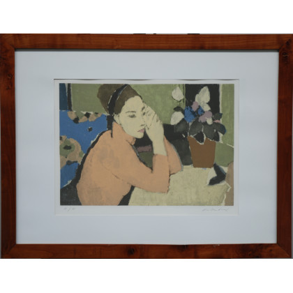 "Figura di donna seduta" litografia es. IV/XX (cm 36x53). In cornice