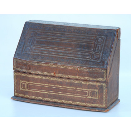 Scatola porta documenti interamente rivestita in pelle impressa in oro. Sec. XIX