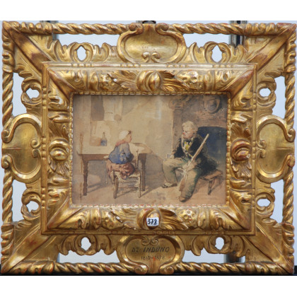 Anonimo del XIX secolo "Il cacciatore" acquerello su carta (cm 22x29) Al retro: iscritto e titolato. In cornice