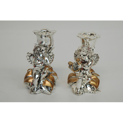 Lotto composto da sedici porta candele in forma di putto in metallo ricoperto d'argento