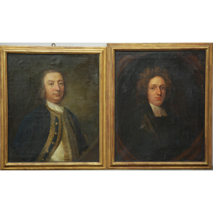 Scuola del sec XVII "Ritratti di gentiluomini " coppia di olii su tela (cm 76x63) In cornice (difetti e restauri)