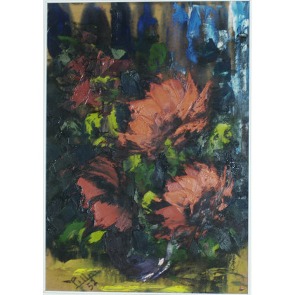"Vaso di fiori - Composizione n. 11" olio su masonite (cm 70x50) Fir,ato e datato '52 in basso a destra, in cornice