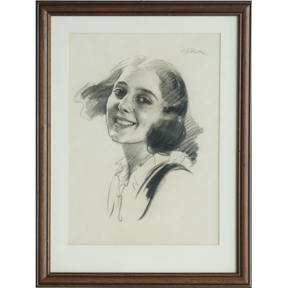 "Volto femminile" disegno a carboncino (cm 36x31) firmato in basso a destra. In cornice