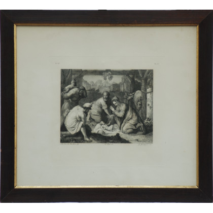 "Sacra famiglia" incisione su rame (cm 16,5x20,5) Fine sec XIX. In cornice