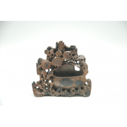 Manifattura orientale. Vaschetta in pietra saponaria decorata a motivi floreali in rilievo (cm 18x17)(lievi difetti)