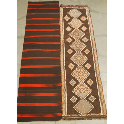 Lotto di due passatoie Kilim con decori e misure diverse (difetti)