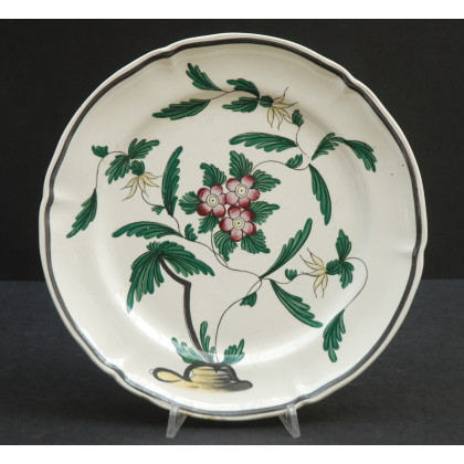 Manifattura italiana, San Cristoforo Milano. Piatto tondo in ceramica decorata in policromia a motivi vegetali