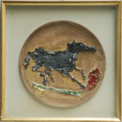Piatto in ceramica decorata a forma di cavallo in cornice (d cm 30)(difetti)