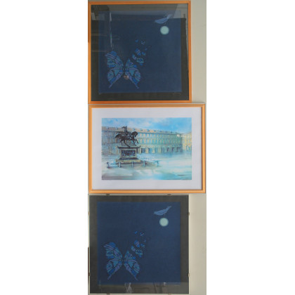 Lotto composto da tre litografie moderne di autori diversi, in cornice