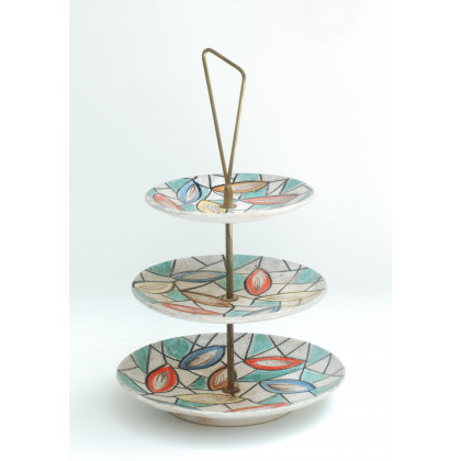 Alzata portafrutta in ceramica e ottone (h cm 40) (lievi difetti)