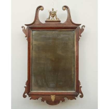 Specchiera in mogano stile impero sagomata con parti della cimasa in bronzo (lievi difetti)(cm 127x80)