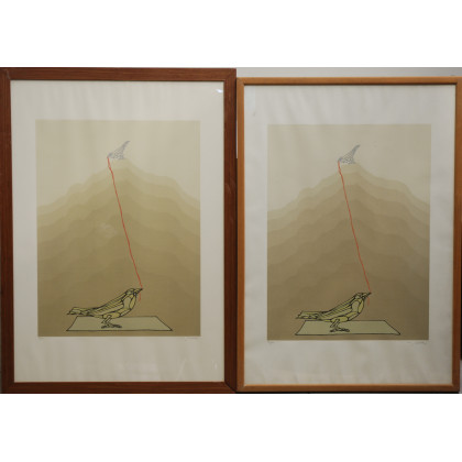Lotto di due litografie moderne a colori raffiguranti uccelli, firmate e numerate, in cornici