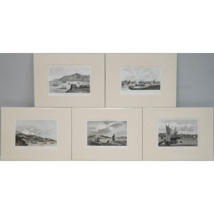 Lotto di cinque stampe raffiguranti colonie francesi e Francia marittima