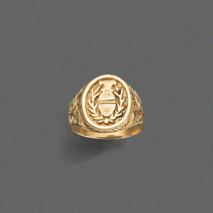 Anello a sigillo in oro giallo con stemma (misura 24) gr 9,40