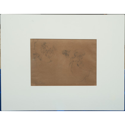 Scuola della fine del secolo XIX, disegno a matita su carta raffigurante studi di teste (cm. 22,5x32) (difetti)