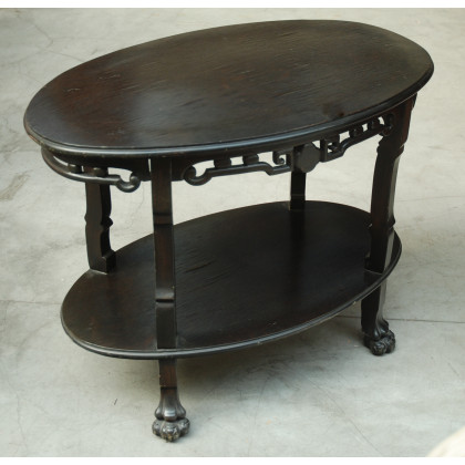 Tavolino con piano ovale da salotto a due ripiani in stile cinese