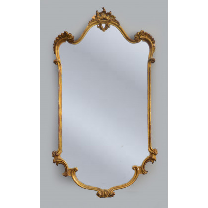 Specchiera in legno intagliato e dorato di forma sagomata. (cm 146x78) (difetti e mancanze)