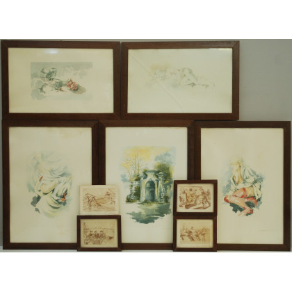 Lotto composto da sette litografie e tre acquerelli In cornici