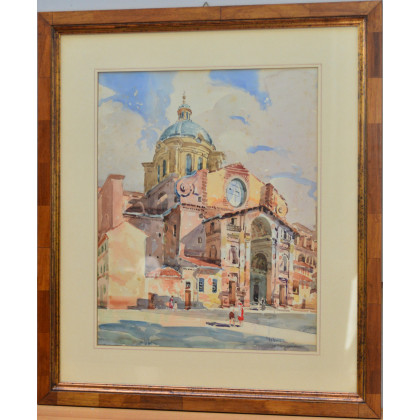 Maestro lombardo degli inizi del XX secolo, "Cattedrale", acquarello su carta (cm 49x39)Firma indecifrata