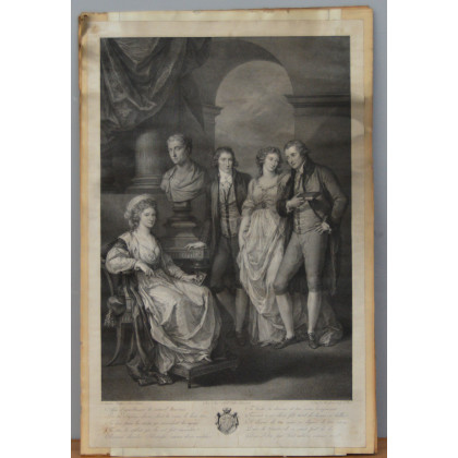 da un dipinto di Angelica Kauffman "Scena di genere con gentiluomo e donna" incisione in rame (cm 65x43) In cornice (difetti)