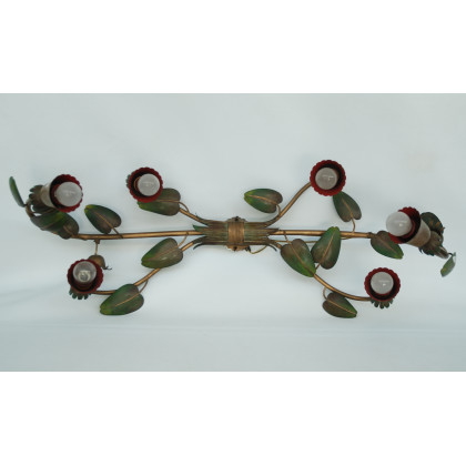 Applique a sei fiamme a forma di rami fioriti e foglie a tutto tondo. Anni '50