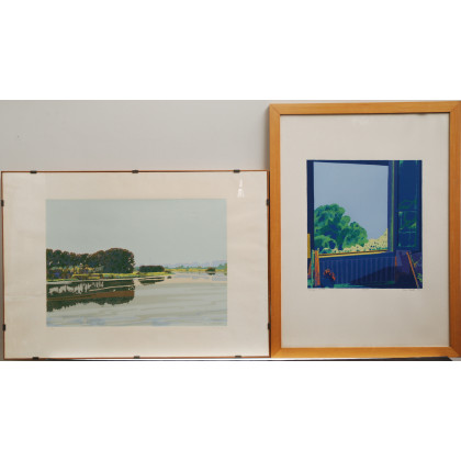 Lotto composto da due litografie moderne a colori di misure e soggetti diversi, firmati e numerati, in cornici