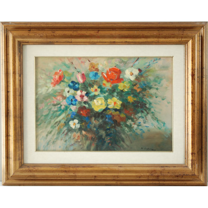 "Fiori" olio su compensato (cm 35x50) Firmato in basso a destra, in cornice