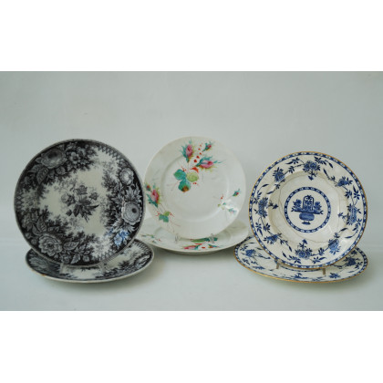 Lotto composto da sei piatti diversi decorati a fiori (difetti)