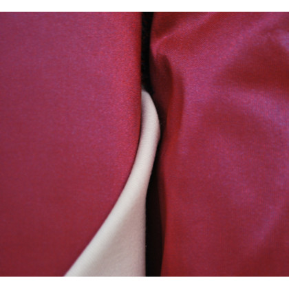 Lotto di n. 2 pezze di taffetà fucsia di cui una doppiata in tela bianca (tot mt 15,5); macchie. Composizione: Co Ps