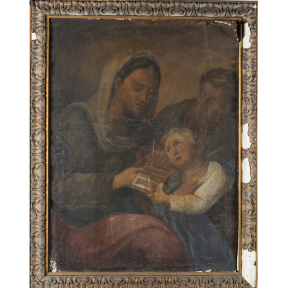 Scuola del secolo XVIII "Madonna con san Giuseppe" (cm 70x100) In cornice (difetti)