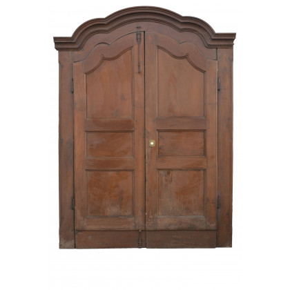 Porta a due ante in noce con parte superiore a sagoma (cm 245x 72) Sec. XVIII (difetti)