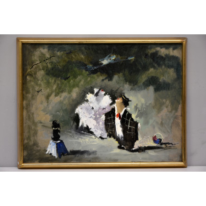 "Clown", olio su tela (cm 60x80) Firmato e datato: "1959" in alto a sinistra. In cornice