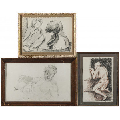 Oppici, Molinaro, Faini, lotto comprendente tre opere su carta di tecniche e misure diverse, firmate. In cornice (lievi difetti)