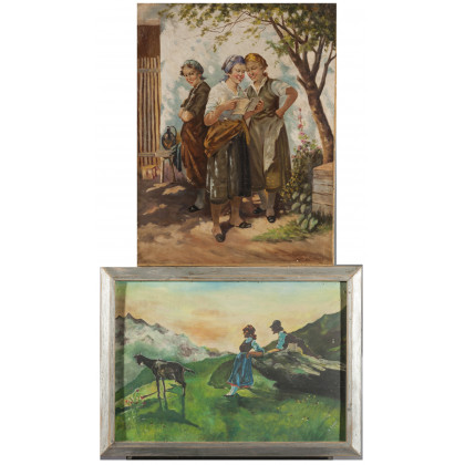 Zardo, firma indecifrata "Pastorelli" e "Ragazze in un cortile" due dipinti di tecniche e misure diverse, firmati. Il primo in cornice (lievi difetti)