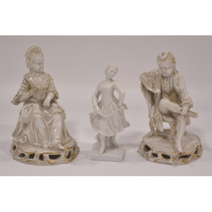 Manifatture diverse. Lotto composto da tre statuette in porcellana bianca (difetti)