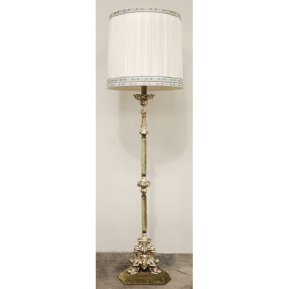 Torciera in metallo, composta da parti di candeliere, montata a lampada (h cm 185)