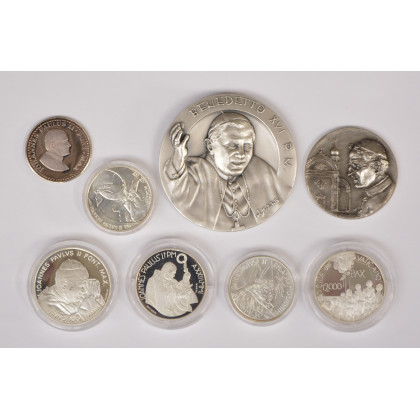 Collezione di otto medaglie diverse in argento (gr. 293)