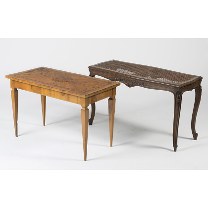 Lotto composto da un tavolino intarsiato ed un panchetto in cannette