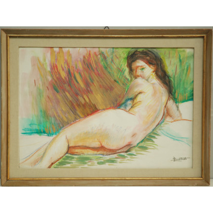"Nudo di donna sdraiata", tecnica mista su carta (cm 35x50) Datato: "13/6/1962" In cornice