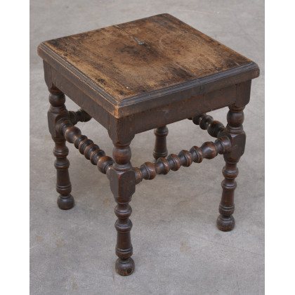 Antico panchetto con gambe a rocchetto tornite (cm 35x34x35) (lievi difetti)