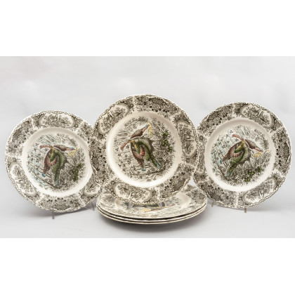 Manifattura inglese Johnson Bros. Sei piatti in porcellana da parete raffiguranti tacchini