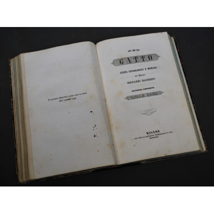 (Vernacolo milanese) Rajberti Giovanni. Volume con raccolta di quattro opere: I Il viaggio di un ignorante ossia ricetta per gli ipocondriaci. II Sul gatto cenni fisiologici e morali seconda edizione colla coda. III I fest de Natal versi milanesi. IV Il pover pill. Milano, Bernardoni, Maggio 1857. 1846. Dicembre 1853. Dicembre 1852. In 8°. Mz. Pelle coeva. Alcune macchie di inchiostro marginali. La II opera in II edizione, le altre tutte in prima