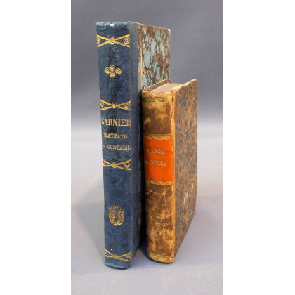 (Ragioneria) Garnier Giuseppe. Trattato di contabilità. Torino, 1863. In 8°. Mz. percallina d'epoca. (Si unisce:) Tremery M. Manuel complet du teneur de livres... Paris, 1836. In 12°. Mz. pelle d'epoca. Carta brunita. Lotto di due opere