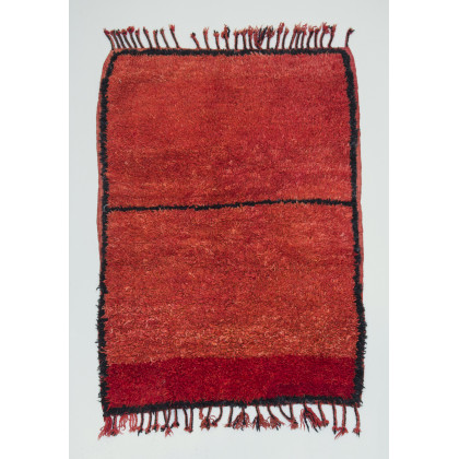 Tappeto marocchino, manifattura contemporanea annodato a mano in lana color rosso con linee nere (cm 112x80) Hand knotted contemporary Moroccan carpet