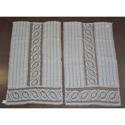 Lotto composto da un paio di tende con bordo e inserto filet e àjour. Sec. XX (cm 130x80) (lievi difetti) Lot comprising a pair of curtains, 20th century (minor defects)