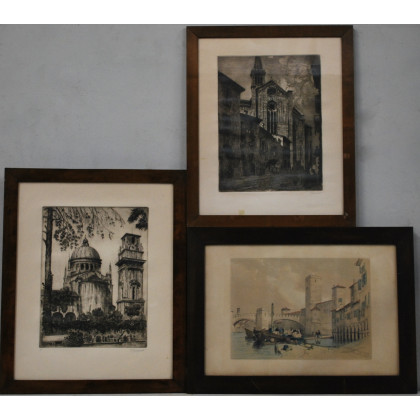 AA.VV. "Vedute di Verona" lotto composto da tre stampe, misure diverse, in cornici (lievi difetti)